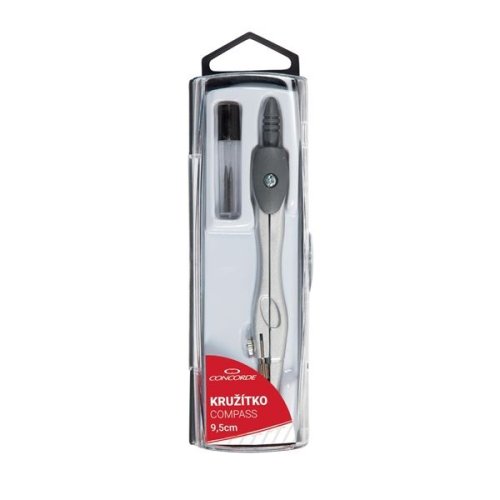 Kovové kružítko CONCORDE v praktickej ochrannej a transparentnej kazete Kazeta obsahuje kovové kružítko vrátane sady s náhradnými tuhami Dĺžka kružidla: 9,5 cm