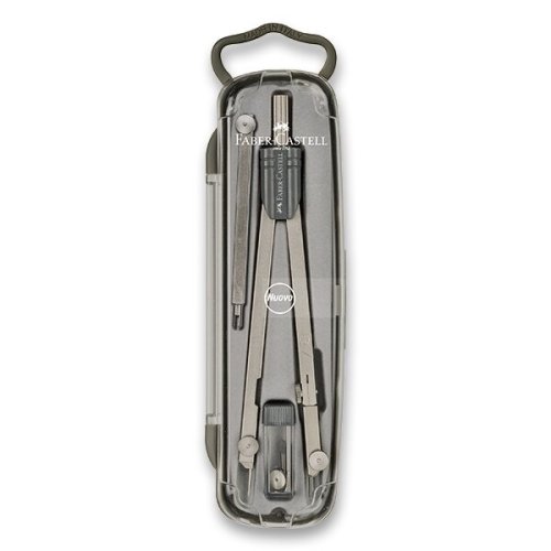 Kvalitné kovové kružítko Faber-Castell School pre kružnice do priemeru 380 mm, s nástavcom až do priemeru 490 mm, dĺžka 140 mm.