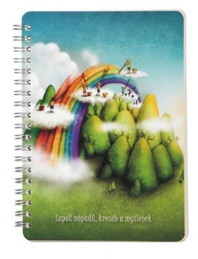 Edícia Dúhová mačka, formát B6, čistý (bez liniek), 50 listov, krúžková TWIN WIRE väzba, špeciálny knižný papier (Holmen book), motív Dúha - Lapač nápadov a kresieb. <br> <br> Poznámkové bloky z edície Dúhová mačka vznikli spoluprácou spoločnosti BOBO a ilustrátorky Lucie Ernestovej. Praktický krúžkový zápisník vreckového formátu B6 s motívom Dúha. Inšpiruje Vás k lapaniu nápadov, ktoré poletujú všade naokolo. <br><br> Krúžkový blok <br> • Krásna farebná obálka s ilustráciou od Lucie Ernestovej <br> • Vysoká gramáž papiera <br> • Krémový Holmen Book papier <br> • 50 nelinkovaných listov <br> • Zadná obálka z tvrdého kartónu pre stabilný zápis <br> • Zviazané <br> • Formát zápisníka je B6, teda 12 x 17 cm <br><br> Lucie Ernestová Som ilustrátorka, grafička a mama dvoch chlapcov. Vymýšľam a vydávam hry šité na mieru detskému humoru a fantázii a tiež poznámkové bloky v krúžkovej väzbe. Kreslím inspiračné obrázky na dôležité životné témy, ktoré sa objavujú aj na obálkach zápisníkov, blokov alebo napríklad Vymaľovánok. Obrázky sa stávajú zrkadlom našich vlastných postojov a odrazovým mostíkom pre zaujímavé rozhovory. Sú bezpochyby vhodným pomocníkom pre všetkých múdrych rodičov a učiteľov, ktorým sa môžu stať sprievodcovia ich vlastnými pohľadmi na svet. <br> <br> Holmen Book papier<br> Jedná sa o špeciálne knižné papiere, ktorý sa skvele hodí na písanie a kreslenie. Vďaka krémovému vzhľadu je príjemnejší na prácu ako klasický bielený papier. Holmen Book papier je síce drevitý, ale papier má hneď niekoľko certifikátov, ktoré zaručujú ekologicky šetrný papier voči prírode – FSC®, PEFC™ a EU Ecolabel. <br><br> TWIN WIRE väzba<br> TWIN WIRE väzba je najdokonalejší spôsob použitia špirály v knihárskej väzbe. Umožňuje ľahké otáčanie listov až o 360 ° bez vzájomného posunutia stránok. Blok môžete nechať otvorený na zvolenej stránke a samovoľne sa nezavrie narozdiel od šitých väzieb.