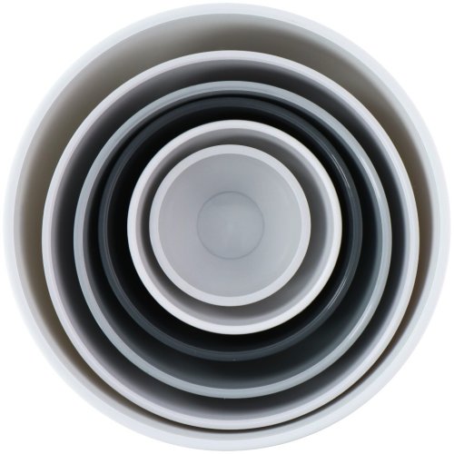 Tieto misky využijete pre všetky vaše kuchárske a pečiace úlohy. Od šľahania vajíčka cez šľahanie smotany až po miešanie cesta a miešanie. 6 mixovacích misiek do seba veľkosťou zapadá, takže ich možno ľahko a kompaktne skladovať. Dizajn a biele a šedé tóny znamenajú, že sa perfektne hodia do každej modernej kuchyne. Mixovacie nádoby sú vhodné do mikrovlnnej rúry. Môžete ich teda použiť aj na rozpustenie masla či čokolády alebo na zahriatie. Po použití ich vložte do umývačky riadu. Špecifikácia: Veľkosti nádob: 0,25/0,6/1,15/2/3,35 a 5,25 litrov. Možno umývať v umývačke