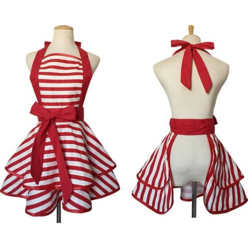 Kuchynská zástera s červenými pruhmi.