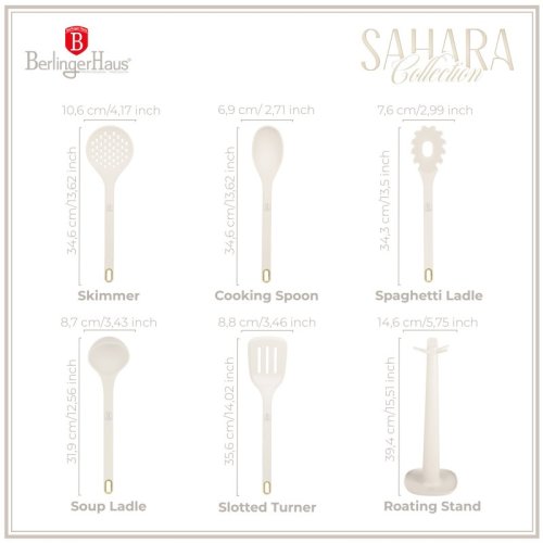 Prineste do svojej kuchyne eleganciu a funkčnosť s našou sadou kuchynského náčinia z kolekcie Sahara. Táto sada je navrhnutá tak, aby poskytovala vynikajúci výkon a dlhú životnosť. Krémová farba dodáva sade moderný a štýlový vzhľad, ktorý sa hodí do každej kuchyne.