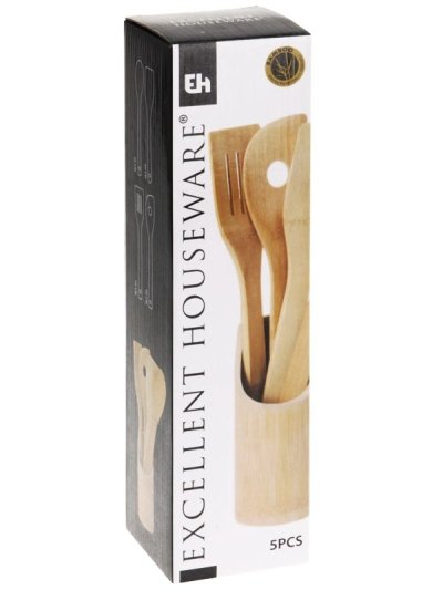 Kuchynské náčinie v stojane sada 5 ks bambus KO-784610060