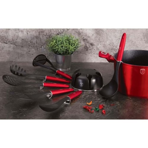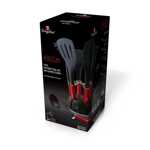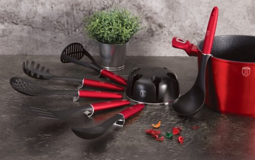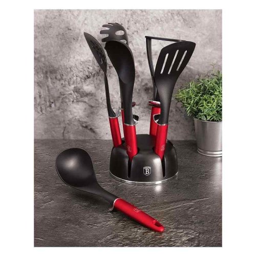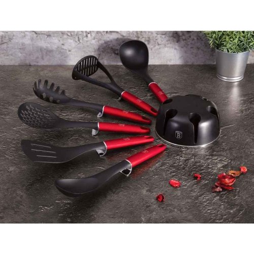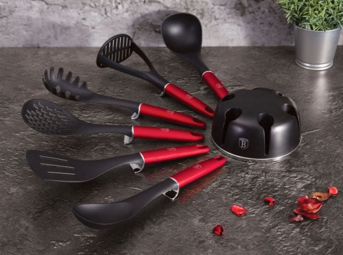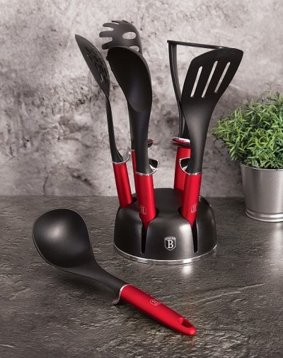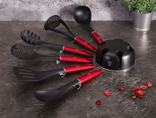 Kuchynské náčinie v stojane sada 7 ks Burgundy Metallic Line BH-6241