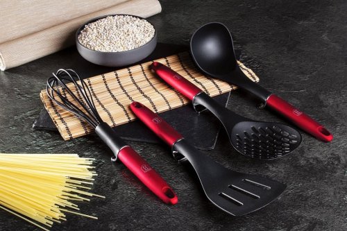 • funkčne jedinečné kuchynské náčinie z nylonu, ktoré nikdy nepoškriabe Váš riad, navyše má uprostred praktickú nožičku, vďaka ktorej je hlavica náčinia vo vzduchu, takže si pri jeho položení nezašpiníte kuchynskú linku
