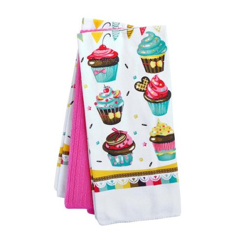 Krásne kuchynské utierky - súprava 3 ks. Moderný dekor "tortičky". Užite si pri varení veľa zábavy s veselými a obľúbenými motívmi. Materiál - 2 ks - mikrovlákno (80% polyester, 20% polyamid), 1 ks - 100% polyester. Rozmery - 38 x 64 cm.