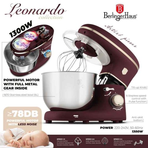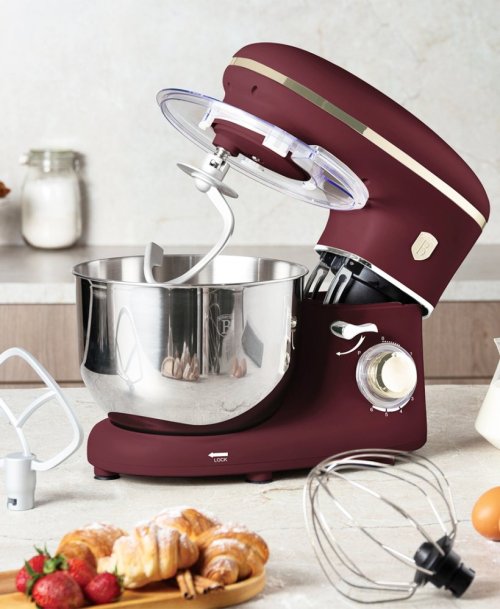 Tento kuchynský robot v modernej matnej bordovej farbe je ideálnym pomocníkom pre každého, kto rád pečie a varí s ľahkosťou.