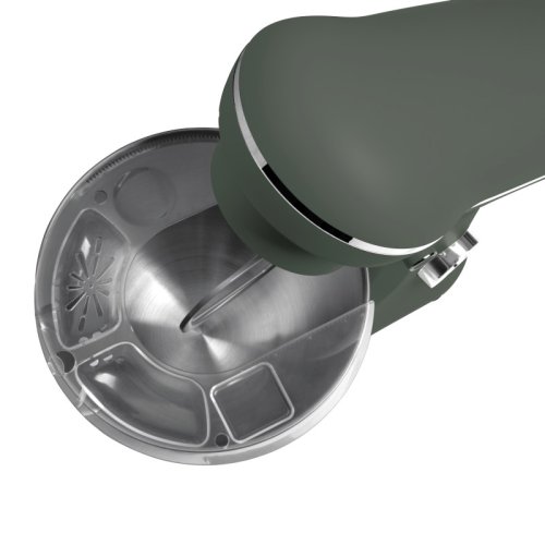 Elegantný kuchynský robot v matne zelenej farbe je výkonný a štýlový pomocník, ktorý uľahčí prípravu cesta, krémov aj šľahačky. S výkonným motorom a praktickým príslušenstvom sa stane nepostrádateľnou súčasťou každej modernej kuchyne.