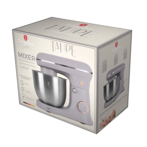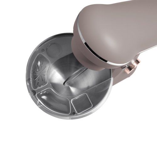 Elegantný kuchynský robot v matne taupe farbe je výkonný a štýlový pomocník, ktorý uľahčí prípravu cesta, krémov aj šľahačky. S výkonným motorom a praktickým príslušenstvom sa stane nepostrádateľnou súčasťou každej modernej kuchyne.