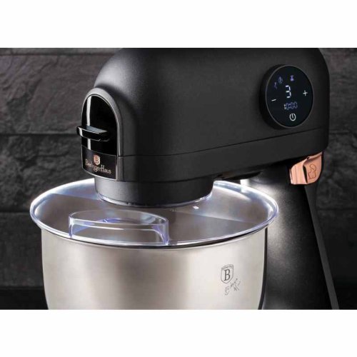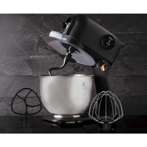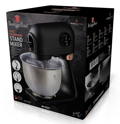 Najnovší model kuchynského robota BerlingerHaus je extrémne výkonný, kompaktný stroj s jednoduchou obsluhou a navyše dokonalým dizajnom. <BR>Vo svojej triede vyniká naozaj silným elektromotorom s extra silným výkonom 1200 W. <BR>Iste oceníte digitálny displej priamo na robote, na ktorom jednoducho prepínate rýchlosti a nastavujete čas miesenia, miešania i šľahania. <BR>Celonerezová misa s bohatým objemom až 5 litrov Vám umožní hravo spracovať ešte viac surovín ako kedykoľvek predtým. <BR>Pritom si však robot zachoval svoje kompaktné rozmery, ladnú ergonomickú konštrukciu a skvele sa s ním na kuchynskej linke manipuluje. <BR>Osvedčená funkcia planetárneho miešania je už nevyhnutnou súčasťou všetkých kvalitnejších, moderných robotov. Tzn. že všetky nadstavce sa v mise pohybujú okolo svojej osi a navyše okolo osi prevodovky, vďaka tomu spracujú kompletne celý obsah misy aj v okrajoch a všetky suroviny sú tak dokonale premiešané. <BR>Hnetací aj miešací nástavec majú nepriľnavý povrch. <BR>Vďaka ľubovoľnému prepínaniu až 6-tich rýchlostí s pulznou funkciou je tento kuchynský pomocník prispôsobený na rýchle šľahanie smotany aj jemnému mieseniu veľkého množstva ťažkého chlebového cesta. <BR>Celkovo je ovládanie veľmi jednoduché, výmena nástavcov alebo vybratie či zaistenie misy sú otázkou pár sekúnd. <BR>Hnetací misa je vyrobená z kvalitnej nerezovej ocele, preto sa nemusíte báť jej umývania v umývačke. <BR>V neposlednom rade sú nové roboty od značky BerlingerHaus dokonalými dizajnovými kúskami v jedinečných metalických farbách, s ladnými krivkami a premyslenou konštrukciou. <BR><BR>- výkon: 1200 W <BR>- kovové vnútorné prevody <BR>- digitálne nastavenie rýchlosti a času na displeji <BR>- 6 rýchlostných stupňov s pulzným spínačom <BR>- hnetacia nerezová misa s objemom 5 litrov <BR>- priehľadný kryt hnetacej misy uľahčuje kontrolu obsahu <BR>- planetárne miešanie na spracovanie 100% obsahu misy <BR>- stabilné protišmykové nohy <BR>- sklápacie rameno <BR>- bezpečnostná poistka nástavcov <BR>- bajonetový systém uchytenia nástavcov umožní rýchle a jednoduché zostavenie <BR>- súčasťou sú 3 rôzne nástavce (miesenie, šľahanie, miešanie) < BR>- jednoduchá obsluha a čistenie, misa navyše môže do umývačky riadu <BR>- elegantný čierny matný povrch <BR>- farba: čierna / rosegold <BR>- kolekcia: Black Rose Collection <BR><BR><IFRAME title="YouTube video player" height=315 src="https://www.youtube.com/embed/UxjfN1xIDvc" frameBorder =0 width=560 allowfullscreen allow="accelerometer; autoplay; clipboard-write; encrypted-media; gyroscope;