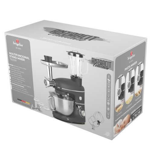 Najnovšie modely kuchynských robotov BerlingerHaus sú extrémne výkonné, kompaktné stroje s jednoduchou obsluhou a navyše dokonalým dizajnom. <BR>Vo svojej triede vynikajú naozaj silným elektromotorom s bezkonkurenčným výkonom 1500 W. Celonerezová misa s nezvyčajne bohatým objemom až 5,5 litrov Vám umožní hravo spracovať ešte viac surovín ako kedykoľvek predtým. <BR>Pritom si však robot zachoval svoje kompaktné rozmery, ladnú ergonomickú konštrukciu a skvele sa s ním na kuchynskej linke manipuluje. <BR>Osvedčená funkcia planetárneho miešania je už nevyhnutnou súčasťou všetkých kvalitnejších, moderných robotov. <BR>Tzn. že všetky nadstavce sa v mise pohybujú okolo svojej osi a navyše okolo osi prevodovky, vďaka tomu spracujú kompletne celý obsah misy aj v okrajoch a všetky suroviny sú tak dokonale premiešané. <BR>Vďaka ľubovoľnému prepínaniu až 6-tich rýchlostí s pulznou funkciou je tento kuchynský pomocník prispôsobený na rýchle šľahanie smotany aj jemnému mieseniu veľkého množstva ťažkého chlebového cesta. <BR>Celkovo je ovládanie veľmi jednoduché, výmena nástavcov alebo vybratie či zaistenie misy sú otázkou pár sekúnd. <BR>Hnetací misa je vyrobená z kvalitnej nerezovej ocele, preto sa nemusíte báť jej umývania v umývačke. <BR>V neposlednom rade sú nové roboty od značky BerlingerHaus dokonalými dizajnovými kúskami v jedinečných metalických farbách, s ladnými krivkami a premyslenou konštrukciou. <BR><BR>Tento multifunkčný robot je jedinečný svojou výbavou, okrem klasickej prípravy ciest alebo krémov má aj ďalšie príslušenstvo. <BR>Súčasťou je mixér s objemom 1,5 litra, v ktorom je možné pripravovať zmrzlinové koktaily, smoothie, polievky alebo omáčky. <BR>Pre milovníkov mäsa je tento všestranný pomocník vybavený mlynčekom na mäso, vďaka ktorému pripravíte domáce mleté mäso, bravčové na sekanú, alebo zdravú variantu morčacieho burgera. <BR>To všetko v jednom prístroji. Príslušenstvo je možné ľubovoľne odňať, aby ste si uľahčili prácu s ostatnými komponentmi. <BR><BR><BR>- výkon: 1500 W <BR>- 6 rýchlostných stupňov s pulzným spínačom <BR>- hnetacia nerezová misa s objemom 5,5 l <BR>- priehľadný kryt hnetacej misy uľahčuje kontrolu obsahu <BR> >- planetárne miešanie na spracovanie 100% obsahu misy <BR>- stabilné protišmykové nohy <BR>- sklápacie rameno <BR>- bezpečnostná poistka nástavcov <BR>- bajonetový systém uchytenia nástavcov umožní rýchle a jednoduché zostavenie <BR>- súčasťou sú 3 rôzne nástavce (miesenie, šľahanie, miešanie), mlynček na mäso a mixér <BR>- jednoduchá obsluha a čistenie, misa navyše môže do umývačky riadu <BR>- matný povrch <BR>- farba antracitová šedá <BR>- kolekcia: Anthracite Collection <BR>