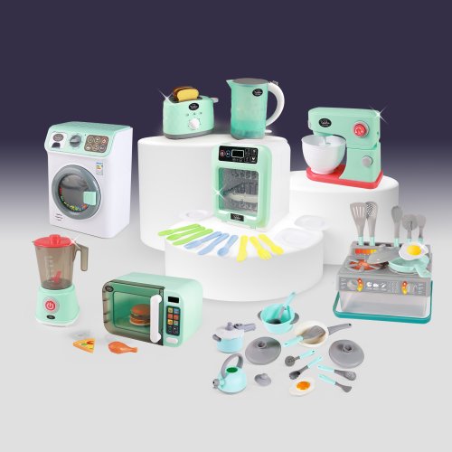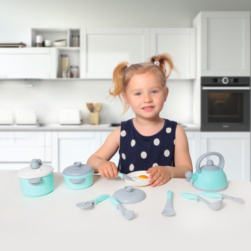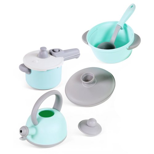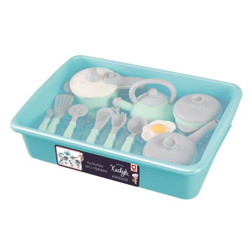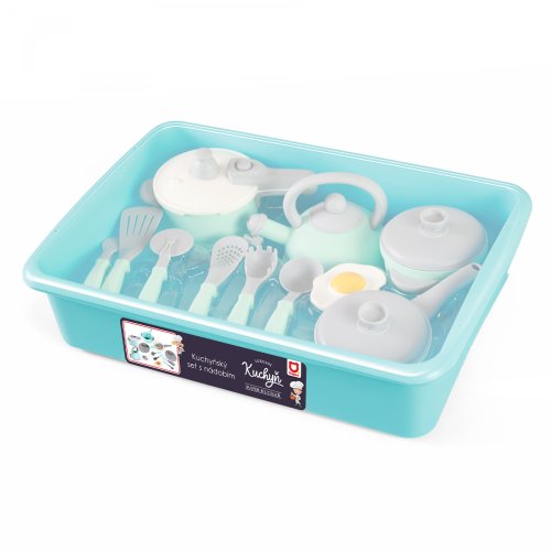 Veľká kuchynská sada v ktorej nájdeš množstvo užitočných doplnkov do kuchyne! Nemôže chýbať napríklad kanvica, hrniec, panvička, tlakový hrniec, naberačka a mnoho ďalšieho kuchynského vybavenia. Všetko je navyše uložené v praktickom boxe. Vyrobené z plastu.