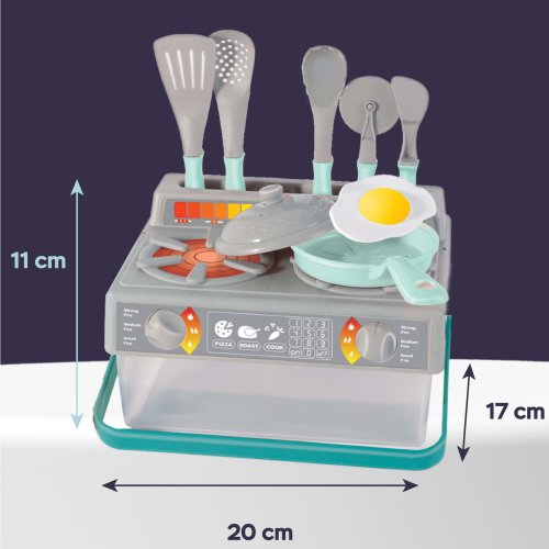 Báječná prenosná kuchynská sada obsahuje varič, hrniec, príbory a množstvo iných vecí potrebných v kuchyni. To všetko navyše v paktickom parádnom boxe! Všetko vyrobené z kvalitného plastu.