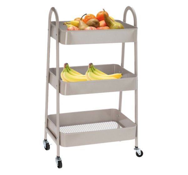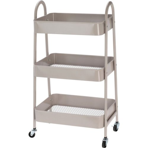 Udržujte svoj kuchynský priestor organizovaný a štýlový s naším kuchynským vozíkom v taupe farbe. Tento vozík je ideálny na ukladanie a presúvanie rôznych kuchynských potrieb vďaka svojej praktickej konštrukcii a trom vrstvám.