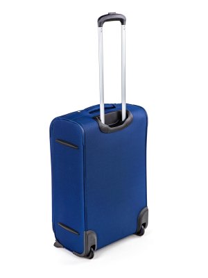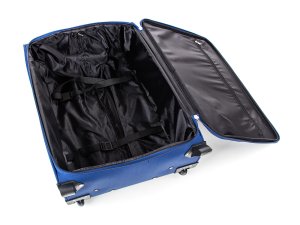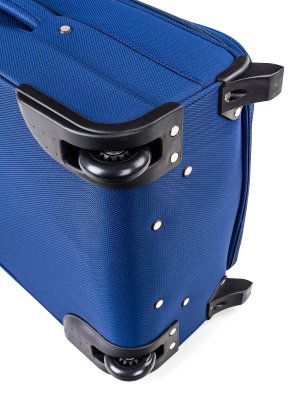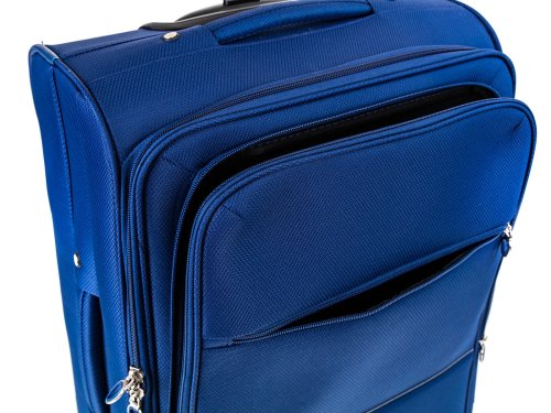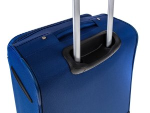 Cestovný textilný kufor 24'' v modrej farbe, je vyrobený z textílie, čo zaručuje nízku hmotnosť batožiny. Je opatrený 2 kolieskami pre ľahké premiestnenie batožiny. Kufor má 2 textilné madlá (bočné a horné) a 1 plastové s teleskopickou rukoväťou s poistkou proti zasunutiu a možnosťou nastaviteľnej výšky vo viacerých polohách. Vo vnútornom priestore nájdete istiace popruhy a vnútorné vrecko pre lepšiu fixáciu a usporiadanie vašich vecí. Ďalej má vonkajšie vrecko na umiestnenie drobnejších vecí. Kufor sa uzatvára na zips.