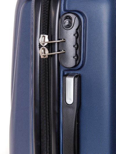 Cestovný škrupinový kufor na kolieskach ABS16, veľkosť S, v modrej farbe, je vyrobený z kvalitného plastu ABS, ktorý je odolný proti nárazu. Je opatrený 4 kolieskami otočnými o 360 stupňov, vďaka ktorým je manipulácia s kufrom veľmi jednoduchá. Kufor má 3 plastové madlá: bočné a dve horné, z ktorých je jedno s teleskopickou rukoväťou s poistkou proti zasunutiu a možnosťou nastaviteľnej výšky vo viacerých polohách. Kufor sa uzatvára na zips a oboch jazdcov môžete spojiť do kódového zámku. Vnútorná časť kufra má látkovú delíiu prepážku s vreckom a krížové upínanie pre lepšiu fixáciu a usporiadanie vašich vecí.