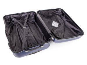 Cestovný škrupinový kufor na kolieskach ABS16, veľkosť L, v modrej farbe, je vyrobený z kvalitného plastu ABS, ktorý je odolný proti nárazu. Je opatrený 4 kolieskami otočnými o 360 stupňov, vďaka ktorým je manipulácia s kufrom veľmi jednoduchá. Kufor má 3 plastové madlá: bočné a dve horné, z ktorých je jedno s teleskopickou rukoväťou s poistkou proti zasunutiu a možnosťou nastaviteľnej výšky vo viacerých polohách. Kufor sa uzatvára na zips a oboch jazdcov môžete spojiť do kódového zámku. Vnútorná časť kufra má látkovú delíiu prepážku s vreckom a krížové upínanie pre lepšiu fixáciu a usporiadanie vašich vecí.