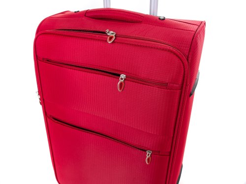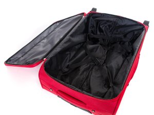 Cestovný textilný kufor TEX15, veľkosti S, v červenej farbe,, je vyrobený z textílie, čo ocenia predovšetkým cestovatelia, pre ktorých je dôležitá nízka hmotnosť batožiny. Je opatrený 2 kolieskami pre ľahké premiestnenie batožiny. Kufor má 2 textilné madlá (bočné a horné) a 1 plastové s teleskopickou rukoväťou s poistkou proti zasunutiu a možnosťou nastaviteľnej výšky vo viacerých polohách. Vďaka vôli textílie, je priestor kufra možné nadrobno prispôsobiť. Vo vnútornom priestore nájdete istiace popruhy a vnútorné vrecko pre lepšiu fixáciu a usporiadanie vašich vecí. Ďalej má dve vonkajšie vrecká na umiestnenie drobnejších vecí. Kufor sa uzatvára na zips.