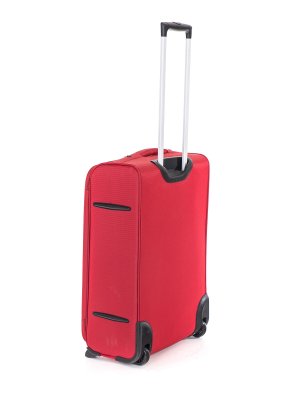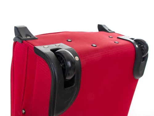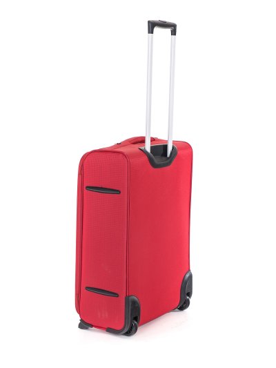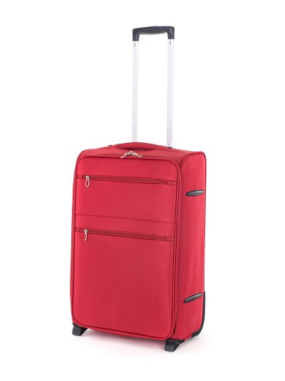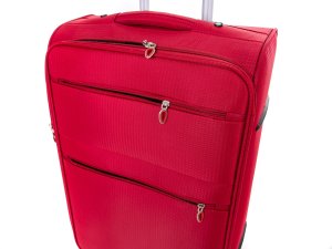 Cestovný textilný kufor TEX15, veľkosti M, v červenej farbe,, je vyrobený z textílie, čo ocenia predovšetkým cestovatelia, pre ktorých je dôležitá nízka hmotnosť batožiny. Je opatrený 2 kolieskami pre ľahké premiestnenie batožiny. Kufor má 2 textilné madlá (bočné a horné) a 1 plastové s teleskopickou rukoväťou s poistkou proti zasunutiu a možnosťou nastaviteľnej výšky vo viacerých polohách. Vďaka vôli textílie, je priestor kufra možné nadrobno prispôsobiť. Vo vnútornom priestore nájdete istiace popruhy a vnútorné vrecko pre lepšiu fixáciu a usporiadanie vašich vecí. Ďalej má dve vonkajšie vrecká na umiestnenie drobnejších vecí. Kufor sa uzatvára na zips.