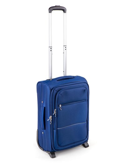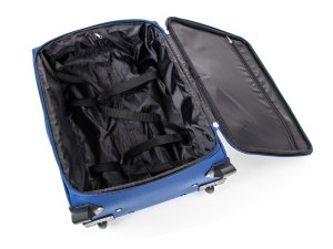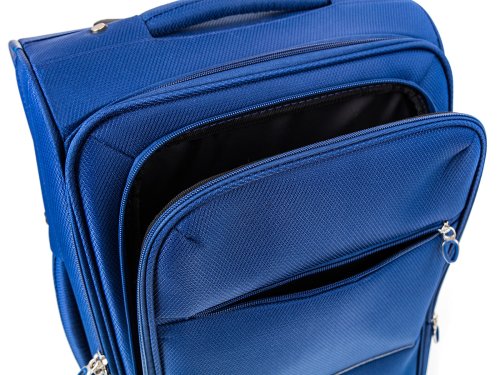 Cestovný textilný kufor 20'' v modrej farbe, je vyrobený z textílie, čo zaručuje nízku hmotnosť batožiny. Je opatrený 2 kolieskami pre ľahké premiestnenie batožiny. Kufor má 2 textilné madlá (bočné a horné) a 1 plastové s teleskopickou rukoväťou s poistkou proti zasunutiu a možnosťou nastaviteľnej výšky vo viacerých polohách. Vo vnútornom priestore nájdete istiace popruhy a vnútorné vrecko pre lepšiu fixáciu a usporiadanie vašich vecí. Ďalej má vonkajšie vrecko na umiestnenie drobnejších vecí. Kufor sa uzatvára na zips.