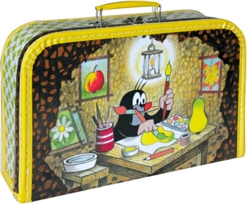 kufrík je vyrobený z kartónovej lepenky a potiahnutý potlačeným papierom uzatvára sa kovovou sponkou súčasťou kufríka je aj praktické ucho na ľahké prenášanie kufor je vhodný nielen do školy na výtvarné potreby, ale aj na uchovanie hračiek a malých detských pokladov rozmery kufríka cca 2 10 cm vyrobené v Českej republike