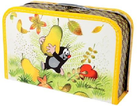 Kvalitný detský šitý kufrík s kovovou prackou a držadlom je z tvrdeného papiera a laminácií na povrchu s pekným dizajnom Krtka. Rozmery výrobku 35 x 22 x 10 cm.