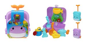 Detský kufrík, ktorý v sebe skrýva pomôcky na piesok, je úžasným spoločníkom na výlet k vode.