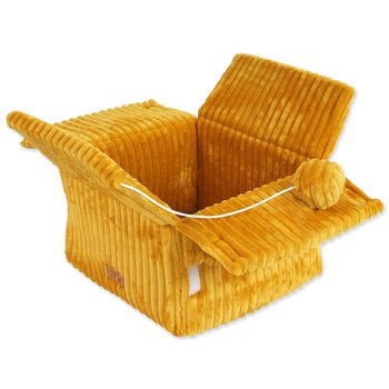 Ručne šitá textilná kukaň v podobe krabice, ktorý Vašej mačke zaistí pohodlné miesto na odpočinok, kde sa bude cítiť bezpečne a rozhodne si ho vďaka jeho atraktívnemu vzhľadu zamiluje.