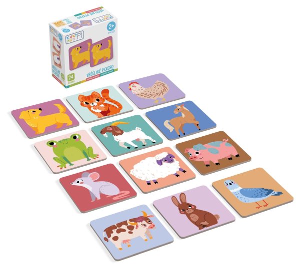 Zábavná vzdelávacia hra Vééliké pexeso Zvieratká na dvore učia najmenšie deti spoznávať svet obľúbených kamarátov. Sada obsahuje 24 kusov 11 x 11 cm veľkých kariet z 2 mm hrubého kartónu.