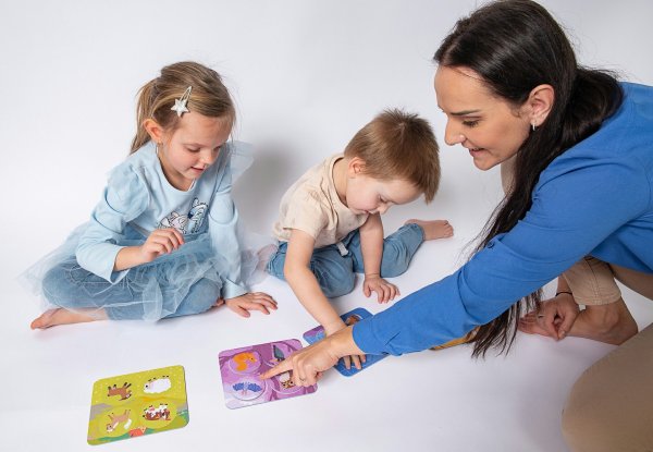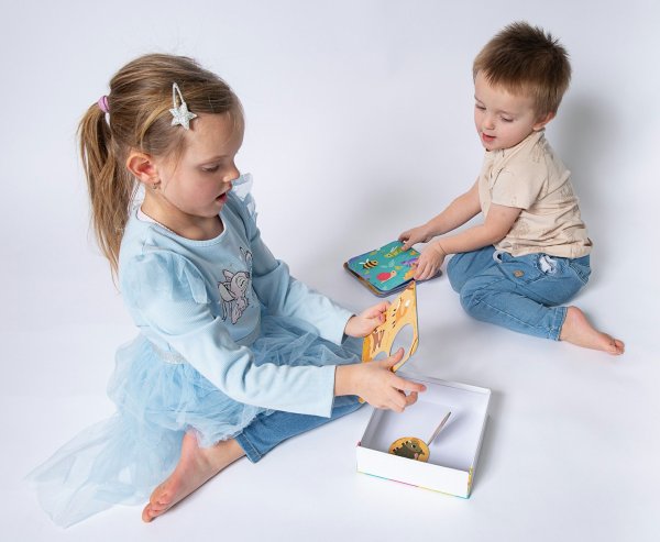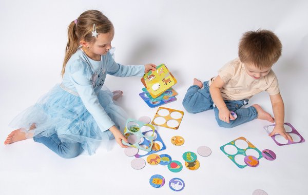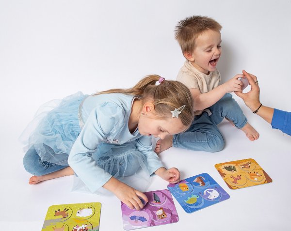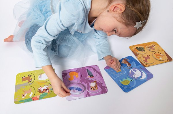 Položte vybranú dosku a zodpovedajúce žetóny pred dieťa. Dieťa má za úlohu umiestňovať žetóny na správne miesta. Pridajte na plochu viac žetónov. Požiadajte svoje dieťa, aby prikladalo žetóny na správne miesta na hracích doskách. Cieľom je použiť všetky hracie dosky a docieliť, aby dieťa správne položilo všetky žetóny.