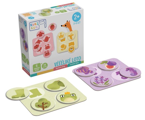 Zábavná a interaktívna hra Vééliké loto Farebné tiene pomáha deťom od najútlejšieho veku precvičovať ich schopnosť spoznávať tvary a farby. Sada sa skladá z 24 veľkých okrúhlych žetónov a šiestich hracích dosiek z pevného 2 mm kvalitného kartónu, ideálneho pre malé detské ručičky. Obsahuje rôzne tipy, ako využiť kartičky a žetóny k ďalším herným variantom.