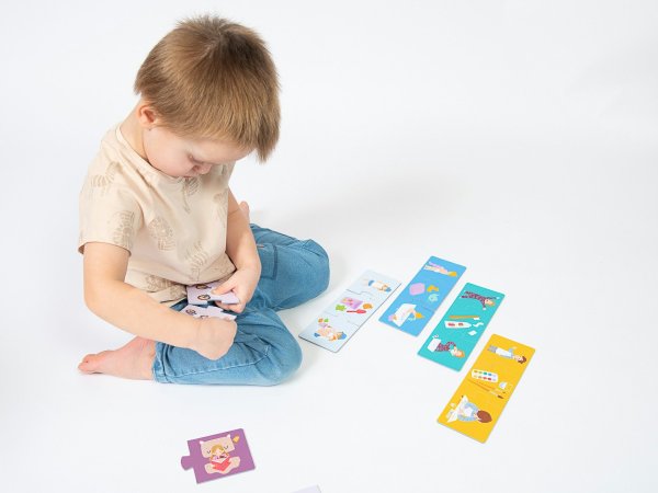Hra Veľké puzzle trio Môj deň, ktorá zábavnou formou predstavuje denný režim, je určená pre malé deti. Puzzle TRIO je vytvorené tak, že línie spojovacích častí umožňujú zostavovať denný príbeh viacerými spôsobmi: spojovacie časti sú tvarované rovnako. Základná trojica obrázkov má vždy rovnaké farebné pozadie. Ich správnym zostavením do trojíc podľa tohto kľúča vytvoríte jednu typickú dennú činnosť. Napríklad: Na ľavom obrázku je dieťa, oblečené pre zobrazovanú činnosť. Na prostrednom obrázku sú hračky alebo pomôcky, ktoré dieťa použije. Na pravom obrázku je dieťa v činnosti s použitím zobrazených pomôcok.