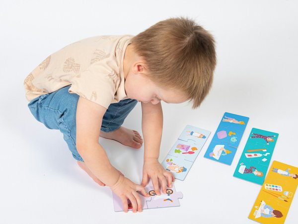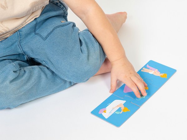 7. Zostavte pomocou puzzle svoju časovú os dňa. Nemusíte vždy spájať puzzle-dieliky k sebe, stačí ich iba prikladať do radu.