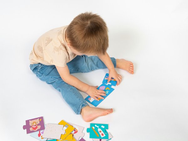 6. Obkreslite na papier tvar podľa jednotlivých dielikov puzzle a skúste s deťmi do nich nakresliť svoje hračky.