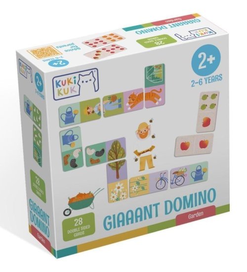 Na záhrade je veľa vecí, ktoré môžu deti objavovať! Zábavné skladanie kartičiek trénuje jemnú motoriku aj logické myslenie batoliat. Na lícovej strane sú na zloženie obrázky zvierat, záhradníkov a ich náčinie. Na rubovej strane nájdete bodky vytvorené z rôznych druhov ovocia – ideálne na hru domino. 28 veľkých pevných dielikov 12 x 6 cm. <br><br> Fun assembling cards fosters fine motor skills and logical thinking of toddlers. Pomocou dvojité-sided printing na karty, ktoré sú suitable pre deti, to expand the game variations.