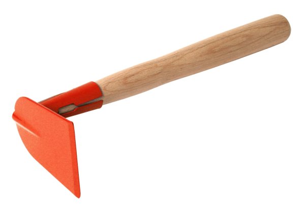 Kultivátor rovná bez hrotov pre kyprenie pôdy na záhonoch. Pracovná časť je z kovu, násada drevená.