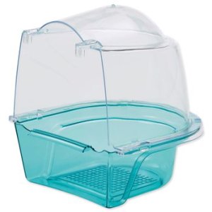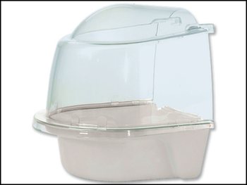 Plastová oválna kúpeľňa s priehľadným poklopom.