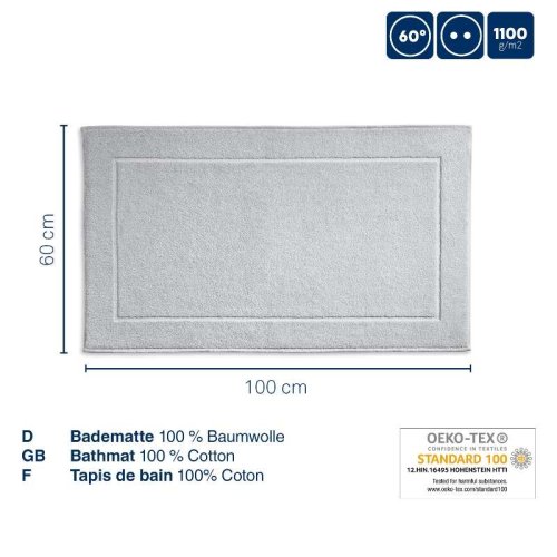 Príjemná pre mokré nohy: mäkká a skladacia predložka do vane Ladessa v strieborno-sivej farbe zo 100% bavlny. Kúpeľňová predložka má rozmery 100 x 60 cm a je možné ju prať do 60 °C. 100% bavlna 60x100cm 1100gsm