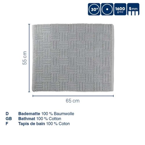 Jednoduchá kúpeľňová predložka so zvláštnym vzhľadom: kúpeľňová predložka Leana. Séria Leana zaujme kvalitným spracovaním a je vyrobená zo 100% bavlny. Je vhodný aj na podlahové vykurovanie. V zásade máte v tejto sérii na výber medzi rôznymi veľkosťami a farbami. Ide o variant v bielej farbe s rozmermi 65 x 55 x 0,5 cm. 100% bavlna 65x55cm