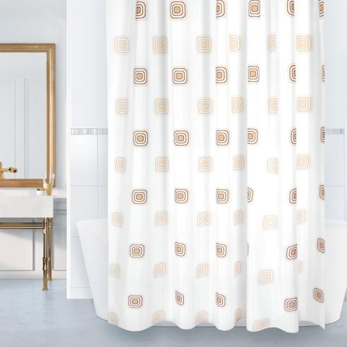 Kúpeľňový záves materiál 100% Polyester dĺžka 200 cm pranie na 30 ° C mierny postup nesušiť v sušičke žehliť maximálne na 110 ° C na hornej strane otvory pre háčiky súčasťou výrobku 12 háčikov na zavesenie