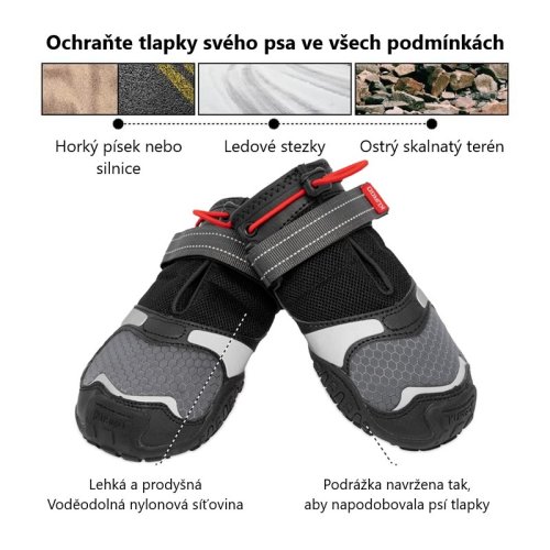 Balenie obsahuje 2 ks topánok. Psie labky sú obvykle väčšie vpredu a menšie vzadu. Pred kúpou teda zmerajte prednú aj zadnú labku.