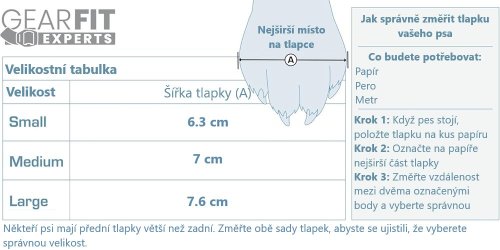 Balenie obsahuje 2 ks topánok. Psie labky sú obvykle väčšie vpredu a menšie vzadu. Pred kúpou teda zmerajte prednú aj zadnú labku.