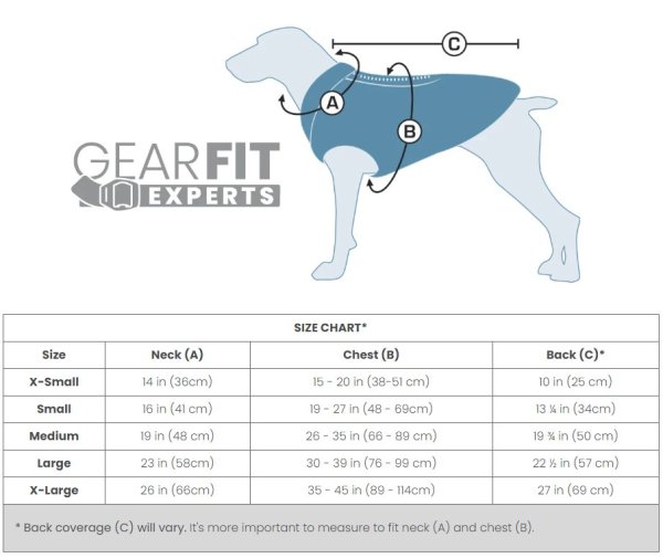 Veľkosť Obvod krku v cm Obvod hrudníka v cm Dĺžka chrbta* v cm