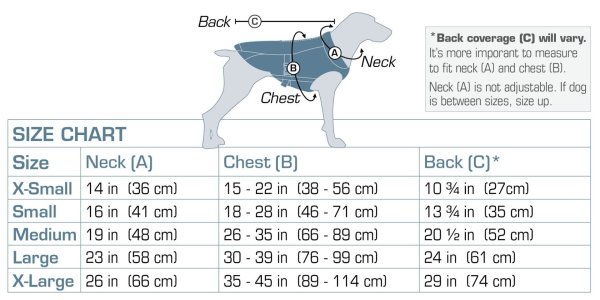 | Veľkosť | Obvod krku | Obvod hrudníka | Chrbát* |