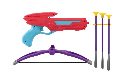 Farebná plastová kuša s tromi šípmi ponúka bezpečnú streľbu na cieľ. Konce šípov sú opatrené prísavkami. Deťom tak nehrozí zranenie. Rozmery balenia 33 x 21 x 5 cm. Vhodné pre deti od 3 rokov.