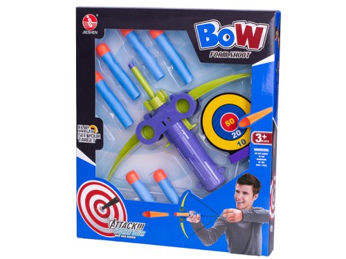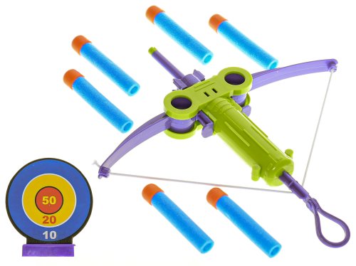 Kuša s terčom a penovými nábojmi 6 ks - mix farieb (modrá, zelená)