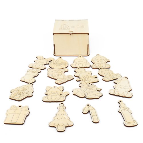 Roztomilé drevené magnetky s vianočnými motívmi. Magnetky hravo nielen ozdobia vašu chladničku, ale aj vyčarujú úsmev na tvári každého dieťatka. Keď bude chcieť, môže si magnetky vymaľovať voskovkami alebo fixkami. Prípadne je možné navliecť šnúrku do očka na magnetke a zavesiť na stromček alebo do detskej izbičky. Magnetky sú rôznych tvarov a veľkostí. Sú dodávané v originalnej drevenej krabičke. Hlavné vlastnosti: 16 ks magnetické tvary a veľkosti vymaľovateľné uložené v originálnej darčekovej krabičke vyrobené z topoľového dreva