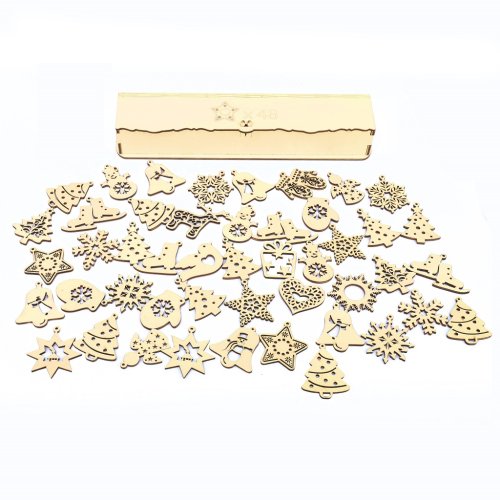 Aj váš vianočný stromček môže byť ozdobený týmito malými drevenými ozdobami. Kombinácia vločiek, zvončekov, stromčekov, anjelikov, sobov, darčekov, snehuliakov, hviezdičiek, holubičiek, zimných korčulí alebo rukavičiek dodajú pravú vianočnú atmosféru každému domovu. Mix rozmanitých druhov vianočných ozdôb je dodávaný v originalnej drevenej krabičke . Hlavné vlastnosti: 48 ksmix rozmanitých druhov vianočných ozdob uložených v originálnej darčekovej krabičke vyrobené z topoľového dreva