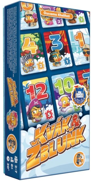 Jednoduchá a zábavná kartová hra pre celú rodinu.<br> ; Kartová hra, ktorá vás prinúti kvákať! <br> <br> Jejda! Vaše gumové kačičky cákajú vodu z vane! Zabráňte im v zatopení celej kúpeľne!<br> Váš cieľ v hre Kvák & žblún je nazbierať čo najmenej bodov počas 3 kôl.<br> ; Každý hráč si vyberie 1 zo 7 kačacích rodín, zamieša 12 kariet a náhodne ich vyloží do mriežky 4X3. Vyberte hráča, ktorý bude Kapitánom. Kapitán hrá rovnako ako ostatní hráči, ale navyše tiež doberá karty, oznamuje ich číselné hodnoty a udržuje prehľad o zahraných kartách. Na začiatku každého ťahu Kapitán otočí a nahlas prečíta vrchnú kartu z doberacieho balíčka .<br> ; <br> Všetci hráči musia súčasne presunúť svoju kartu so zodpovedajúcim číslom jedným z týchto spôsobov: - Kartu presuňte vodorovne alebo zvisle (nie šikmo) na priamo susediacu kačaciu kartu. Karta zakryje kartu, na ktorú bola presunutá.<br> ; - Kartu presuňte na ľubovoľné voľné miesto bez zakrytia inej karty.<br> ; <br> Ak už hráč skôr zakryl kartu oznámenú Kapitánom, nemôže s ňou hrať. Každý takýto hráč musí nahlas kvá knúť.<br> ; Ak kváknu všetci hráči, Kapitán umiestni práve dobranú kartu do odhadzovacej oblasti.<br> ; Ak aspoň jeden hráč mohol hrať, umiestni Kapitán kartu na kapitánsku kôpku, a nie do odhadzovacej oblasti.<br> ; <br> Kolo končí pri splnení jednej z dvoch nasledujúcich podmienok:<br> - Jeden alebo viac hráčov utvorilo zo svojich kariet jednu hroma dku.<br> ; - V odhadzovacej oblasti sa v závislosti od počtu hráčov nachádza konkrétny počet kariet.<br> ; <br> Na konci každého kola si hráči zapíšu získané body do bodovacieho bločku. Bodový zisk každého hráča určujú hodnoty všetkých striekancov na jeho nezakrytých kartách. Hráč, ktorý dokončí bicykel len s jedným balíčkom kariet, získava záporné body.<br> ; Cieľom je mať na konci hry čo najmenej bodov!<br><br> Počet hráčov: 2-7<br> Vek: 8+<br><br> Obsah balenia: 110 kariet<br> 1 bodovací bloček<br> české a slovenské pravidlá