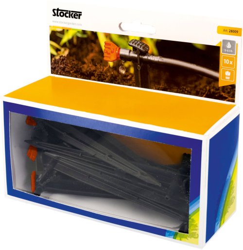 Nastaviteľný kapakovač uvoľňuje po kvapkách správne množstvo vody pre sadenice. Otáčaním farebného ventilu je možné regulovať prietok od 0 do 6 litrov za hodinu. Inštalujeme zabodnutím ostrého konca kolíka do pôdy.